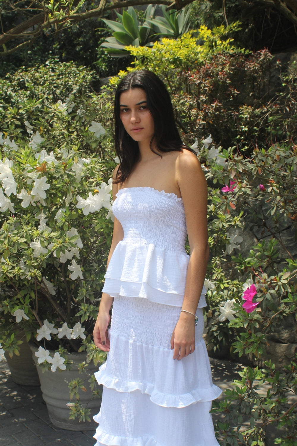 Top Strapless corrugado con bobos.
